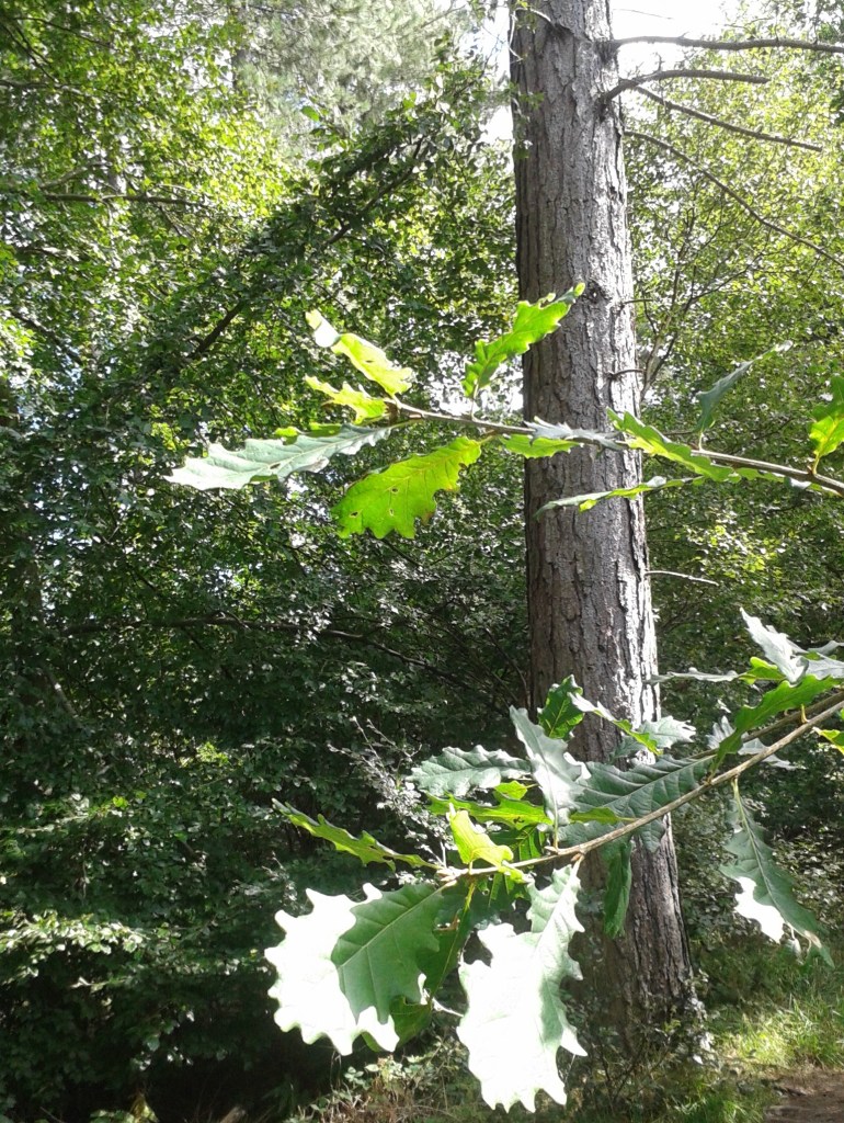 Barely ten metres from the carpark, I stepped in under a mixed canopy of beech, larch and oak. The trees weren’t of specatular size but, still, they clearly had been around for a good few decades. A little further on, the neatly ordered rows of a plantation of scots pine, perhaps 30 years old, darkened the left side of the path, while off to my right, a small clearing amongst the beeches was dotted with recently-planted hornbeam (I think) saplings that still had plastic guard-tubes around them.